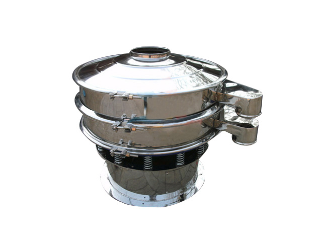 旋振篩(圓形振動(dòng)篩)由立式振動(dòng)電機(jī)作激振源,因?yàn)槠渖舷露酥劐N安裝在發(fā)動(dòng)軸兩側(cè),使電機(jī)的旋轉(zhuǎn)運(yùn)動(dòng)轉(zhuǎn)變?yōu)榇怪薄⑺健A斜的三次元運(yùn)動(dòng)。  旋振篩產(chǎn)品特點(diǎn):  設(shè)計(jì)精巧,耐用,適合任何粉類以及粘性液體的篩分。  操作簡(jiǎn)單,換網(wǎng)方便,易于清洗。  篩網(wǎng)無(wú)阻塞,粉末無(wú)飛揚(yáng)。  雜質(zhì)以及粗料自動(dòng)排出,并且可以與給料設(shè)備、輸送設(shè)備配套使用,處理量大,生產(chǎn)效率高。  尺寸小,節(jié)省空間,易于移動(dòng)。  易于養(yǎng)護(hù),可單層或多層使用。  篩網(wǎng)設(shè)計(jì)合理耐用,換網(wǎng)只需3-5分鐘。  篩網(wǎng)可達(dá)5層,篩分出6種不同顆粒大小的物料